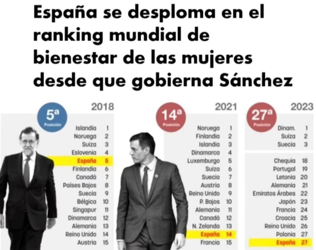 España se desploma en el ranking mundial de bienestar de las mujeres desde que gobierna Pedro Sánchez